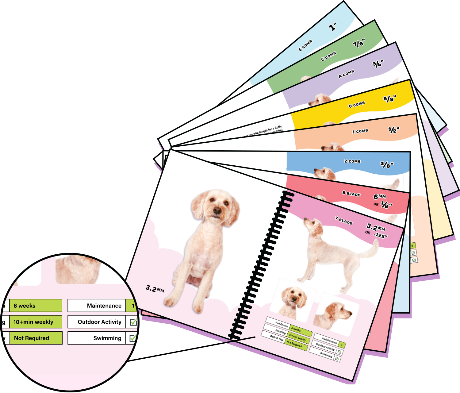 So my wife and I wrote this book, and took photos of the same dog in 7 different haircuts - each of the standard guard comb lengths. We hope it helps you in caring for your dogs!